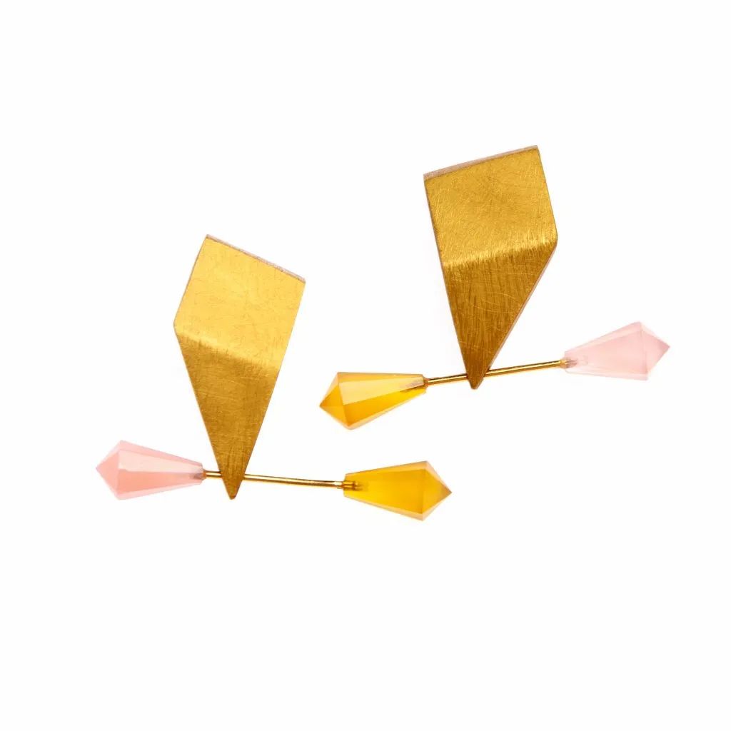 她通過研究圖形和用敘事的手法來(lái)進(jìn)行創(chuàng)作:圖像和經(jīng)歷被重新詮釋為各種基本形狀和色彩的平衡,從中誕生出動(dòng)態(tài)而輕便的首飾作品。