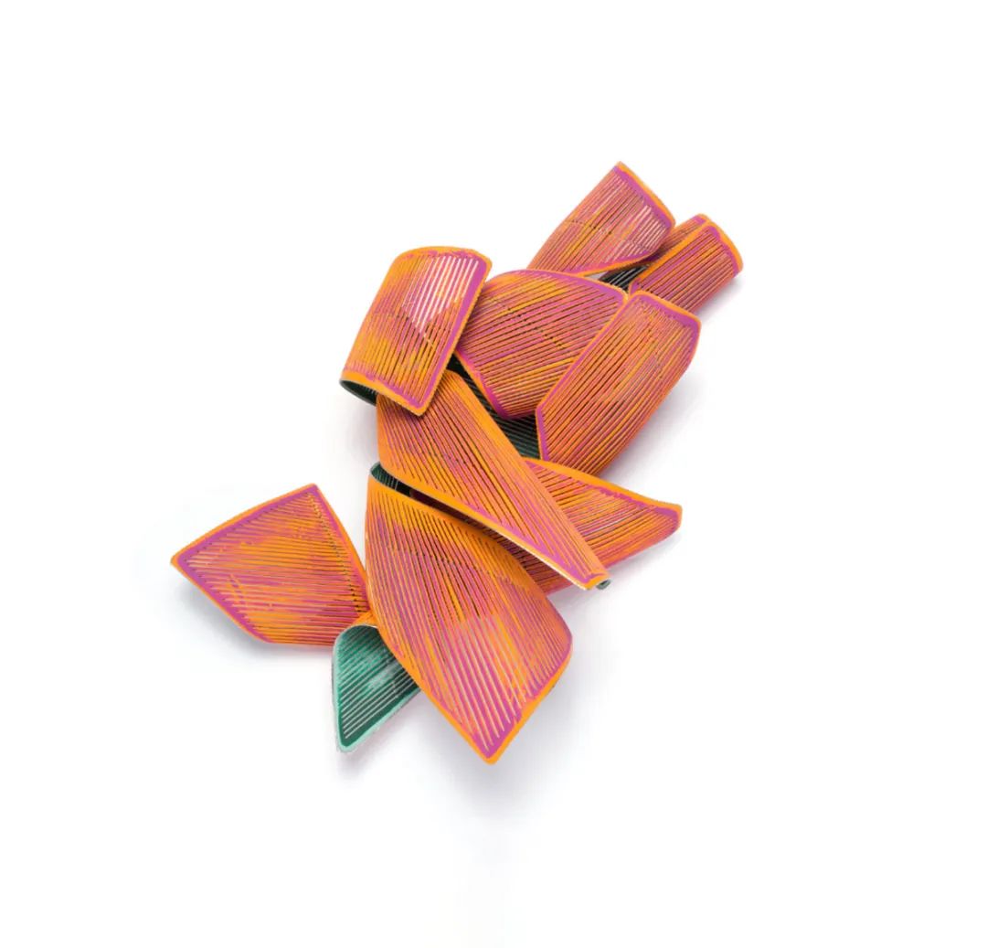 這個(gè)展覽完全取材于 RAM 不斷增長(zhǎng)的收藏,在慶祝當(dāng)代珠寶的同時(shí)強(qiáng)調(diào)從新的角度(有時(shí)是字面意思)考慮它。例如,有些胸針的展示方式會(huì)將注意力集中在背面而不是正面。雖然佩戴一件衣服時(shí)背面可能是看不見的,但藝術(shù)家可能仍然會(huì)利用它是佩戴者與之互動(dòng)的一面這一事實(shí)——延續(xù)正面的元素,添加銘文,或者至少,深思熟慮地融入它進(jìn)入整體構(gòu)圖。