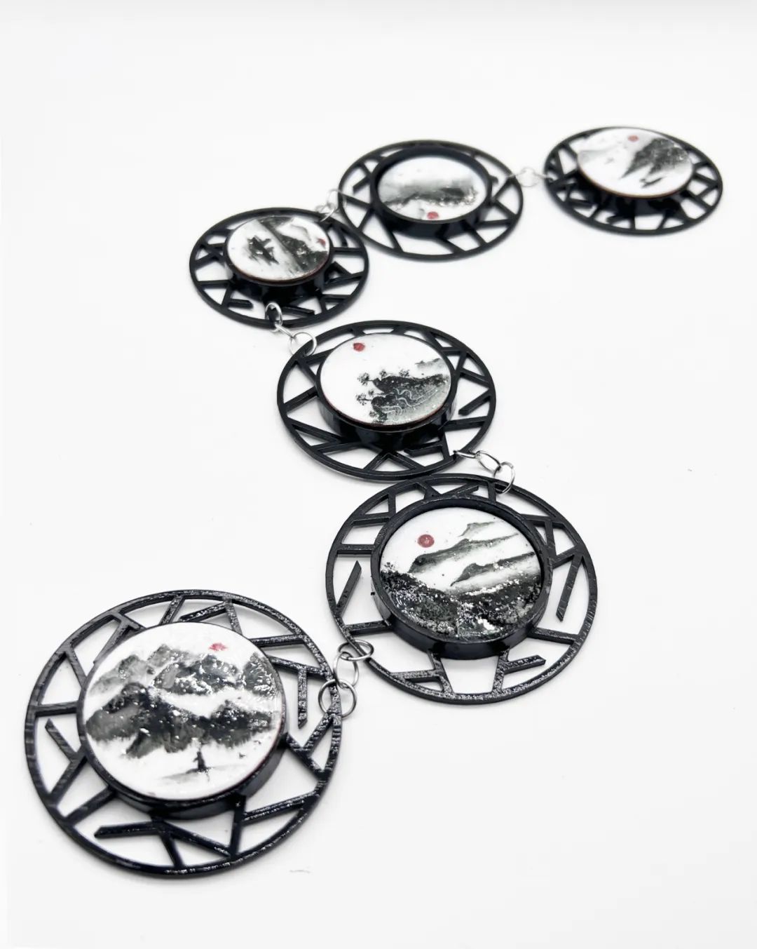 這些當(dāng)代首飾不僅展示了研究生們的創(chuàng)造力和藝術(shù)才華,同時(shí)也展現(xiàn)了他們對(duì)新材料和新技術(shù)的敏銳洞察力。通過不拘一格的材料選擇和多樣化的工藝技巧,創(chuàng)造出了更加豐富多樣的藝術(shù)表達(dá)方式。