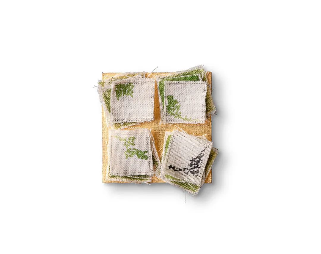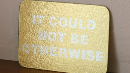 在本次展覽中,Brand采用傳統(tǒng)的燙金工藝,在廢棄玻璃制品上貼上文字,顛覆了垃圾與寶藏的概念。她對對話和聯(lián)系時(shí)刻的興趣通過在以前的玻璃頂桌子上的鍍金公告找到了新的機(jī)會(huì)。她的作品將精選的材料與簡潔的短語相結(jié)合,在喜劇和悲劇之間搖擺不定。