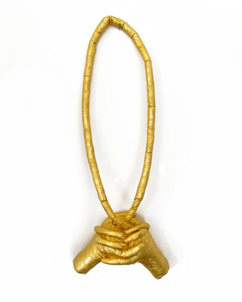 尤其是珍珠項(xiàng)鏈,它可能是最受廣泛認(rèn)可的珠寶形式之一,也是張林特別著迷的單品。珍珠項(xiàng)鏈的普遍吸引力是因?yàn)樗徽J(rèn)為無害、女性化和得體,這種說法對張來說既有吸引力又矛盾。促使她以提供更自由裝飾感的方式探索珍珠的材質(zhì)和語言。以對材料和工藝的詳細(xì)了解為基礎(chǔ),Cheung 獨(dú)特的制作方法對人類狀況做出了詼諧而深刻的回應(yīng),體現(xiàn)在她畢業(yè)中制作完美的“珍珠項(xiàng)鏈”。