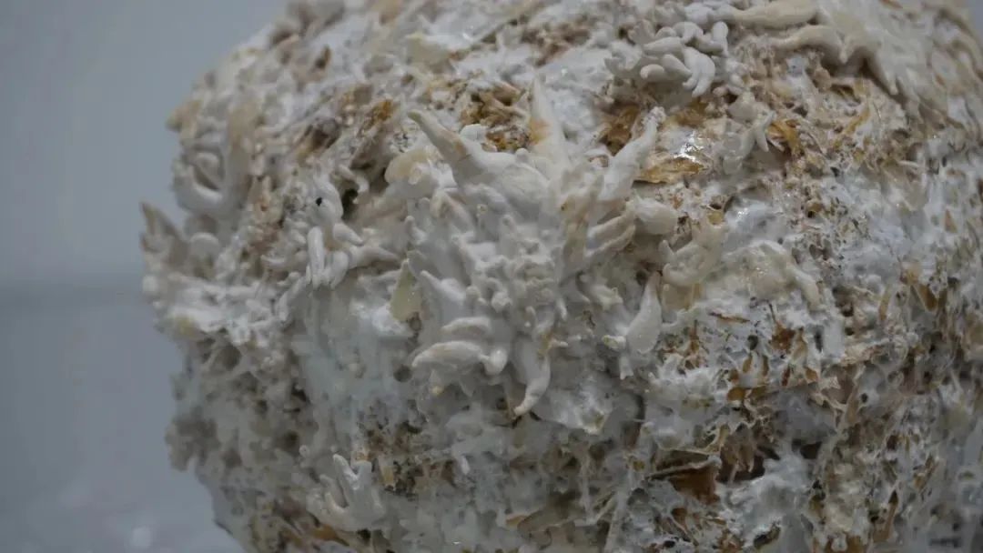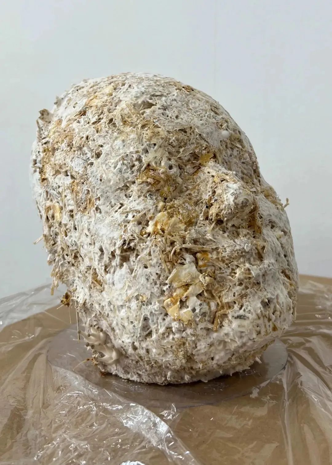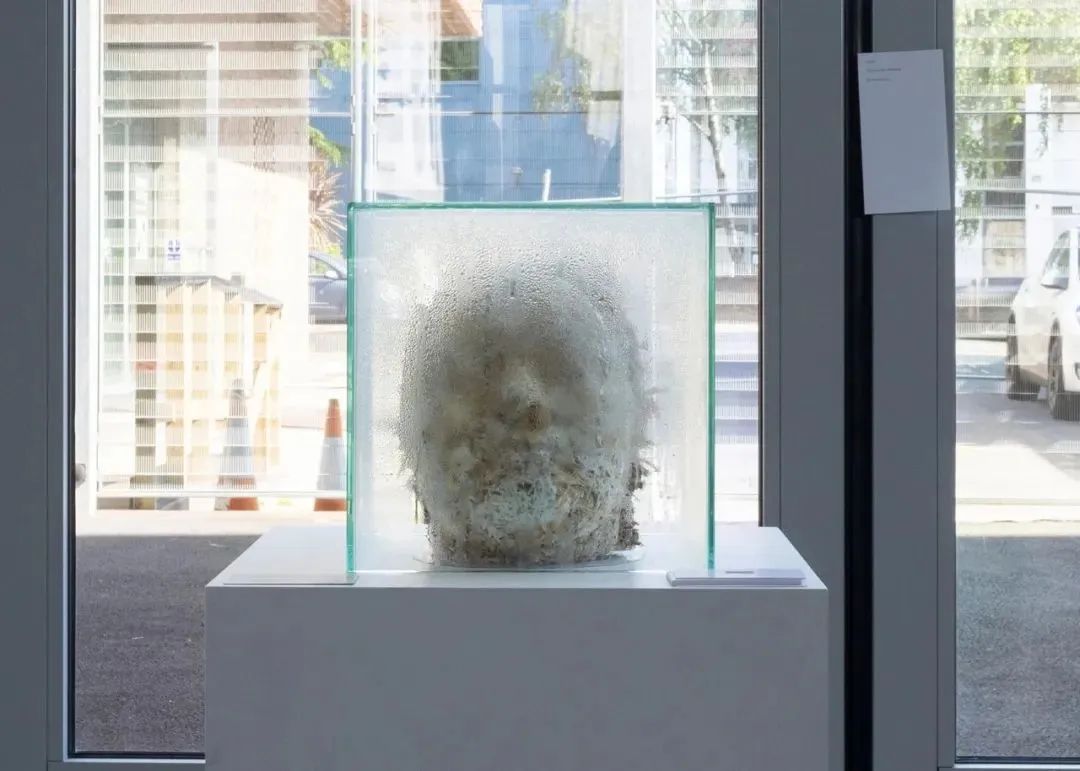 Continuu是一件由活的牡蠣菇菌絲體制成的藝術(shù)家頭像雕塑。這件作品是葉舍對生與死循環(huán)性質(zhì)的反思;理解并接受,為了在這個星球上維持自身,我們應該維護作為整體存在的網(wǎng)絡,而我們也是其中的一部分。這個雕塑是活的,將會繼續(xù)生長出可以收獲和食用的蘑菇。