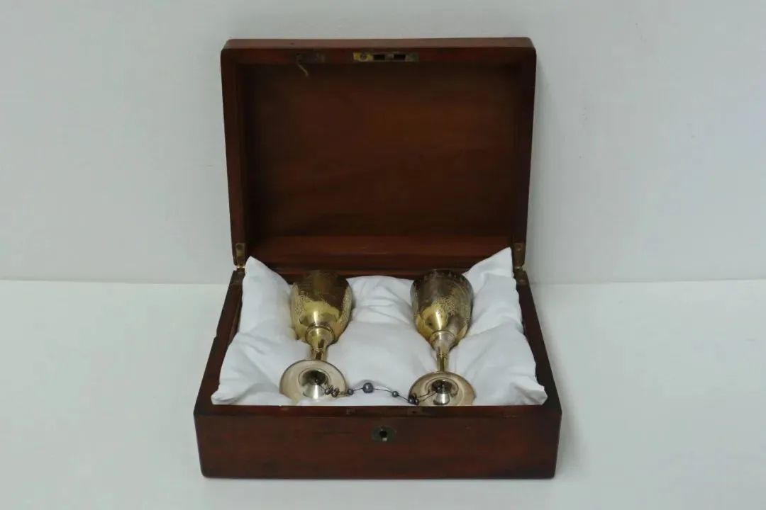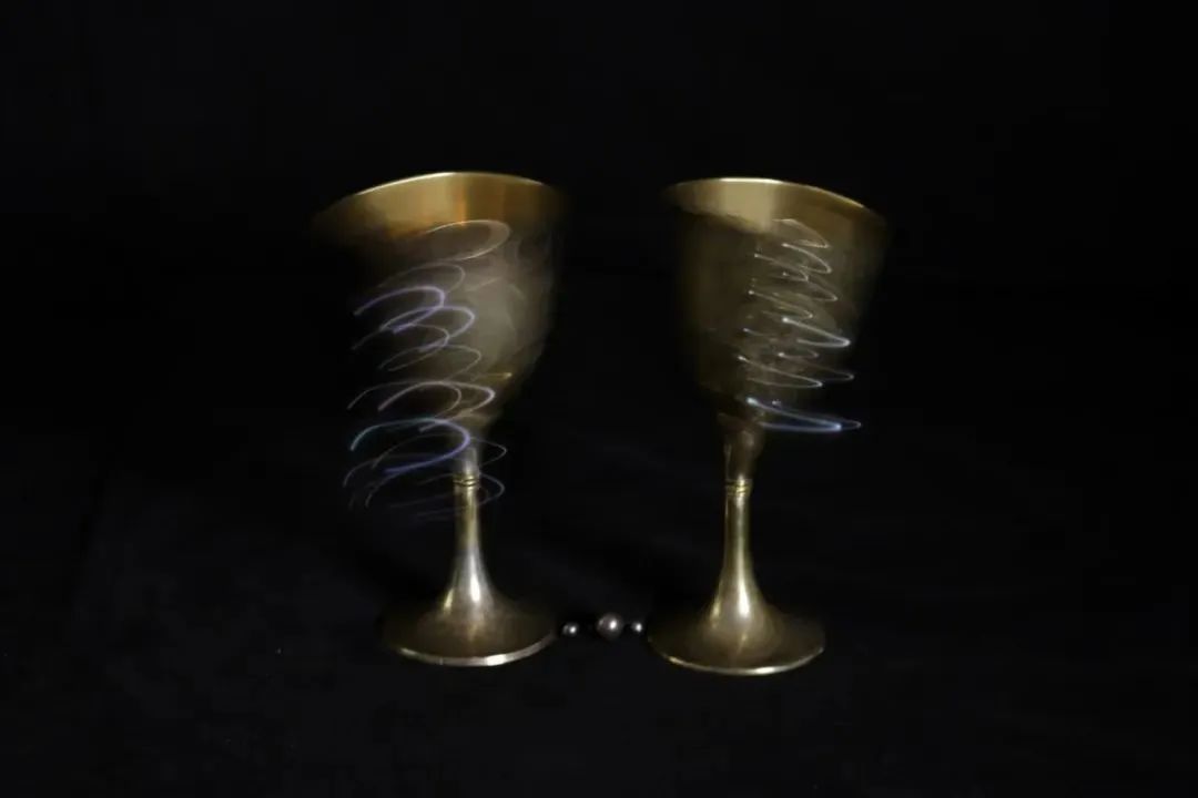 這一對酒杯,它們在底部由一串珍珠相連,并且杯中仿佛盛著美酒。人們可以敬杯來表達彼此之間的關(guān)系,同時也象征著兩個相似頻率的相似事物之間的共鳴,一種一對一的關(guān)系。