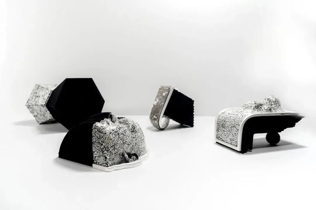 這個系列的作品基于藝術(shù)家Yiwei的問題:先天性盲人的夢境世界是什么樣的?在他們的夢中,他們只能通過觸覺、聽覺和其他感官,而沒有視覺。Yiwei以先天性盲人的夢境世界為主要元素,利用珠寶作為媒介,探討視覺與其他感官之間的關(guān)系。盡管視覺是我們體驗世界的重要工具,但今天我們暴露于人工、精心策劃的圖像和視覺刺激之中,限制了我們對世界的感知,導致對物體和文化的偏見和狹隘理解。因此,視覺體驗并不是我們體驗展示的唯一方式;我們應該關(guān)注其他感官。