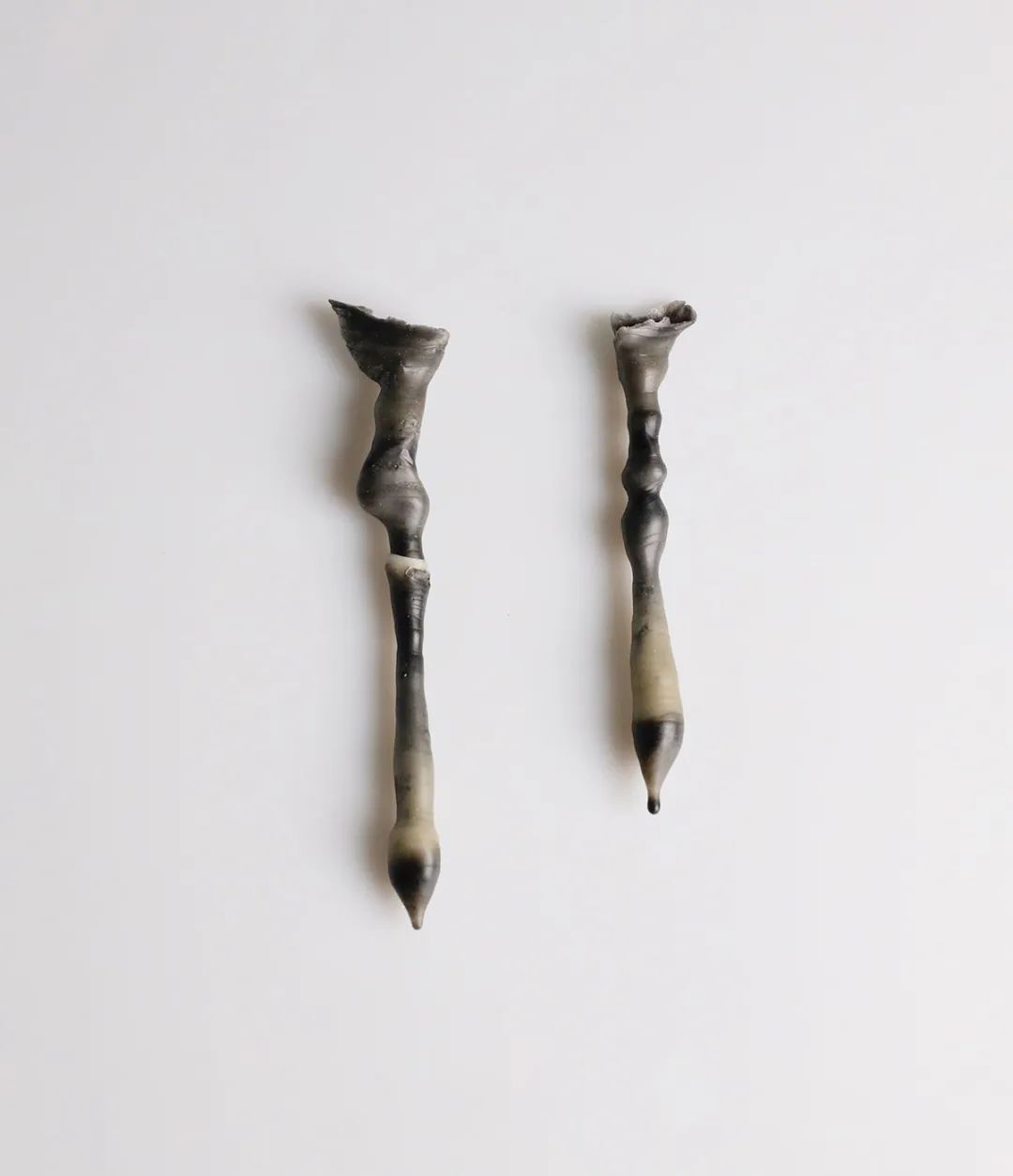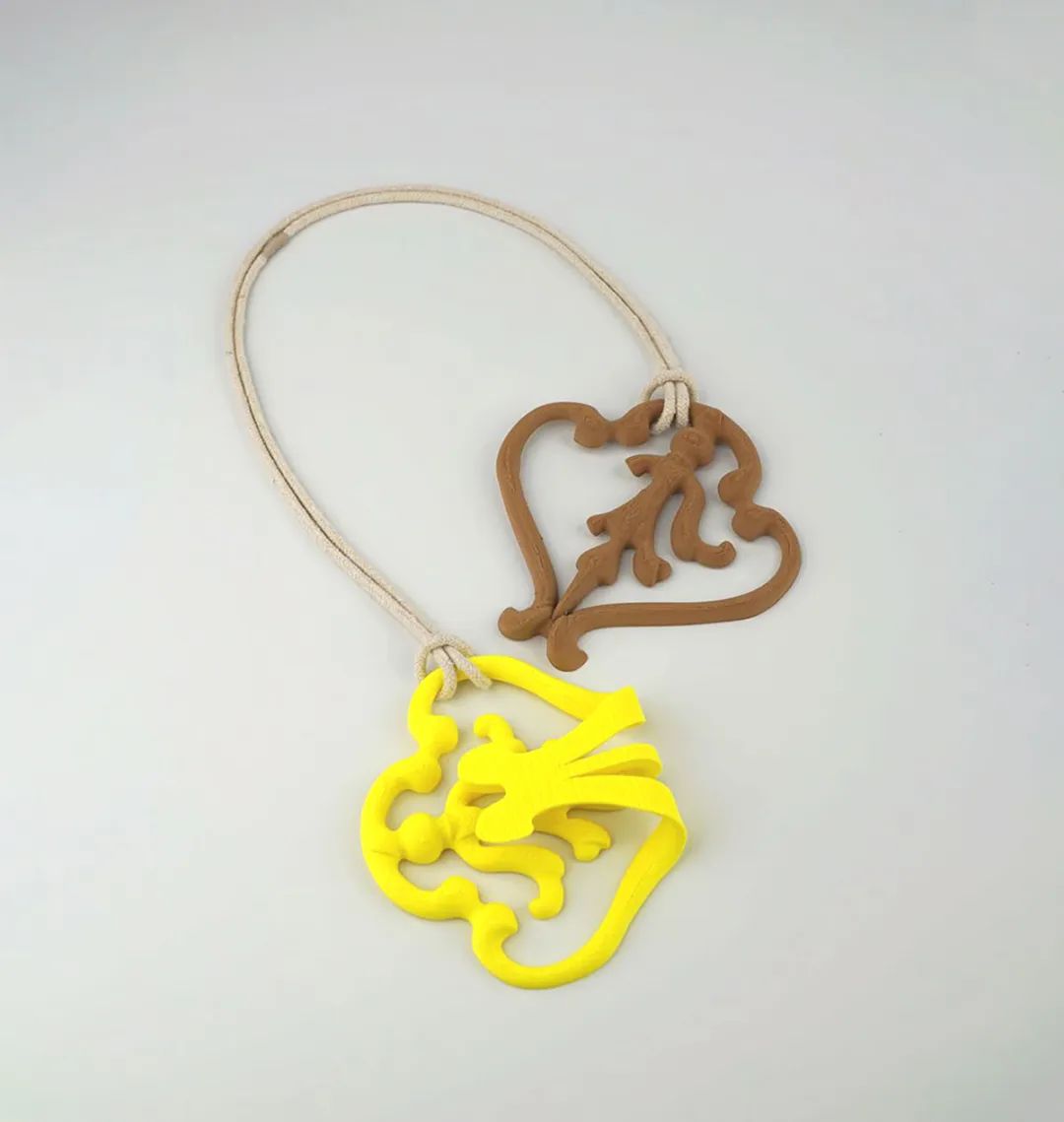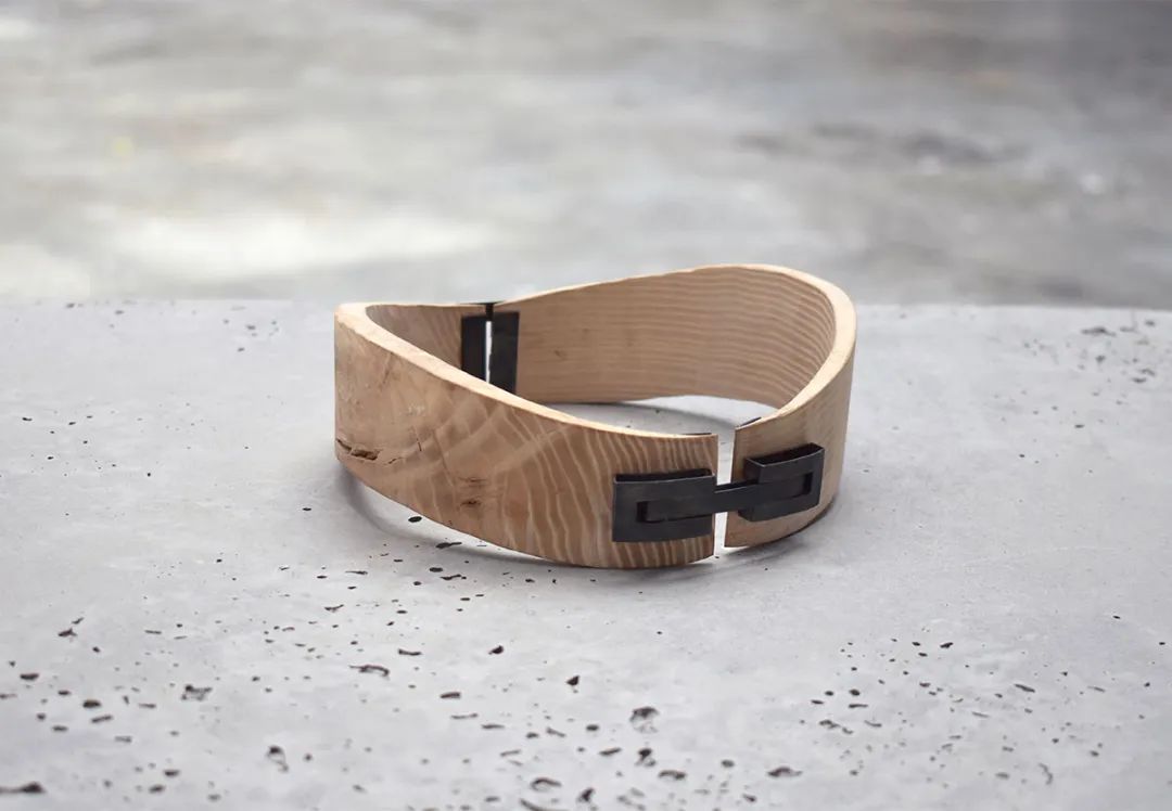 展覽展示了摩根·德克勒克 (Morgane de Klerk) 設(shè)計(jì)的眾多木制胸針。Iro Iro胸針在無數(shù)方面相互關(guān)聯(lián),就像我們?nèi)祟愐粯樱核鼈儽舜斯采?,同時(shí)又各自渴望獨(dú)一無二。它們的金屬部分會(huì)對(duì)其木質(zhì)形狀產(chǎn)生反應(yīng),反之亦然。