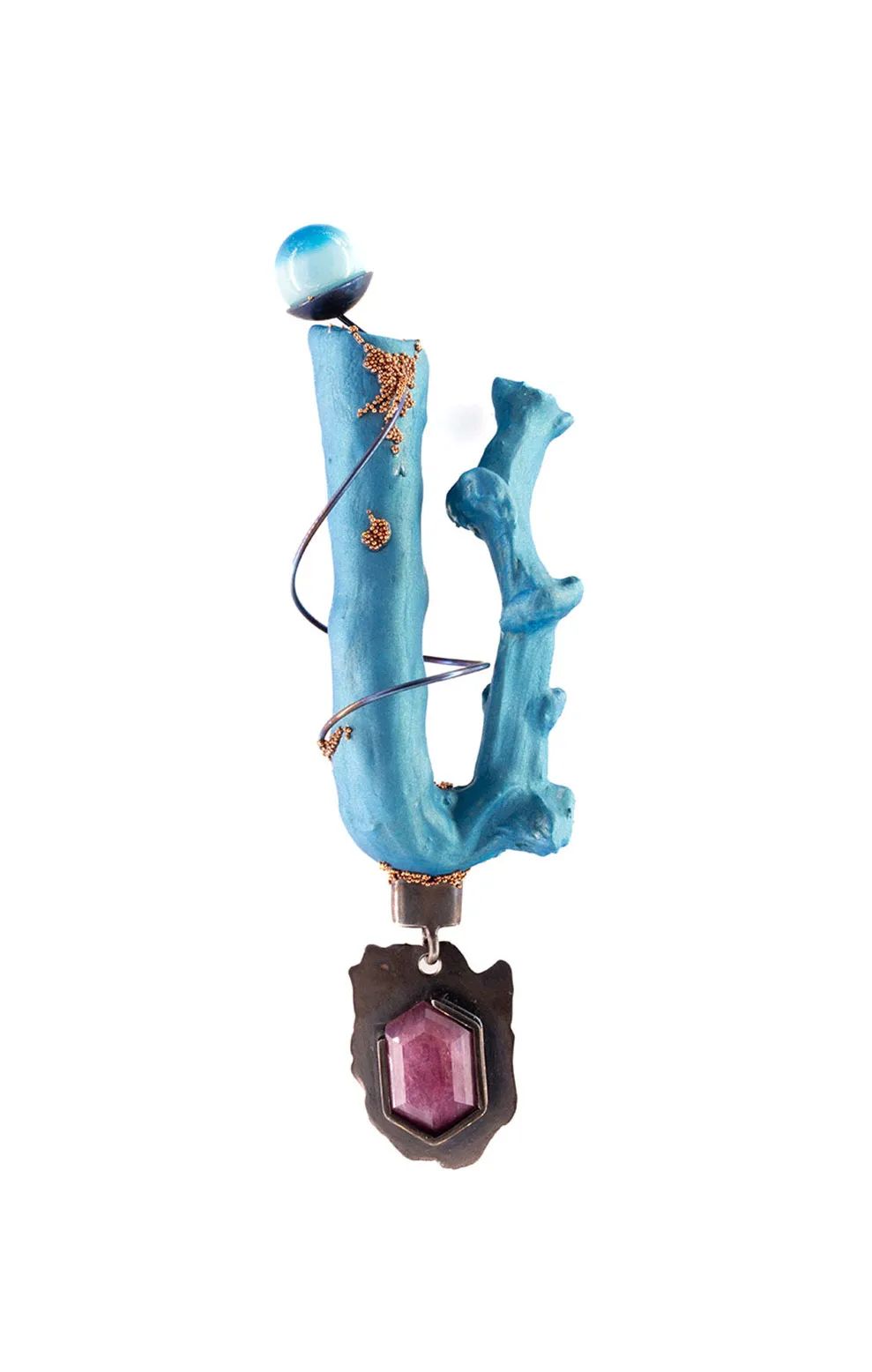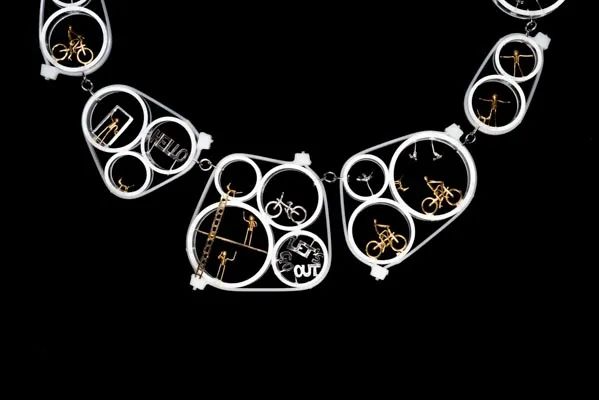 Maeda Asagi 精心打造的雕塑也是珠寶。她采用木材、有機(jī)玻璃、樹脂、琺瑯、銀、金、半寶石和寶石制成,在作品中雕刻和繪畫,講述了有關(guān)家庭和社會(huì)的深思熟慮的敘述。森上博物館畫廊將展出 50 多件作品。她的標(biāo)志性作品《星球上的故事》是一件可佩戴的藝術(shù)品,描繪了 28 個(gè)國家的 32 個(gè)城市,由八枚可拆卸胸針組成一條項(xiàng)鏈。