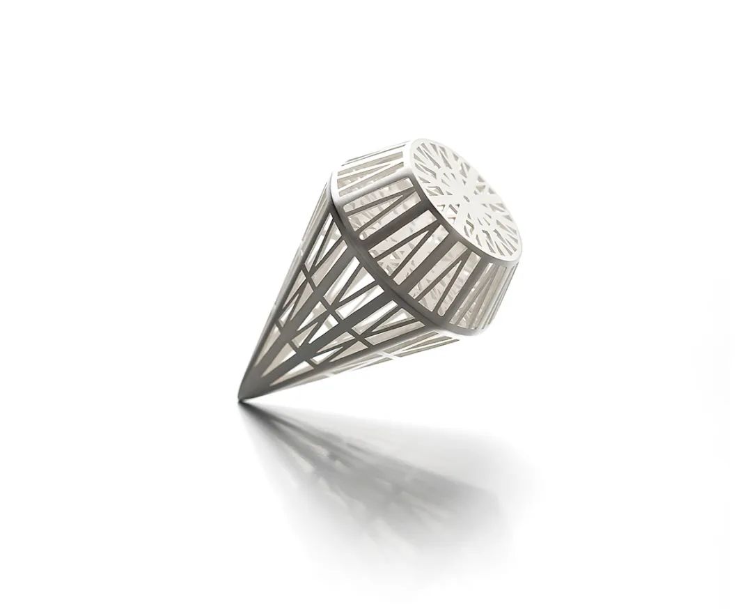 Tore Svensson 是瑞典珠寶藝術(shù)的先驅(qū)之一,有著令人印象深刻的悠久職業(yè)生涯。體驗(yàn)就在他的背部、手臂和手中。為新的藝術(shù)流派鋪平道路需要毅力、藝術(shù)實(shí)力,也許還需要一點(diǎn)俏皮的心態(tài)。這些特點(diǎn)在斯文森的作品中也有體現(xiàn);經(jīng)過數(shù)千次錘擊而形成的大鐵碗和嚴(yán)格的幾何形狀,其表面給作品帶來溫暖,有時(shí)還提供了一種平衡的幽默感。