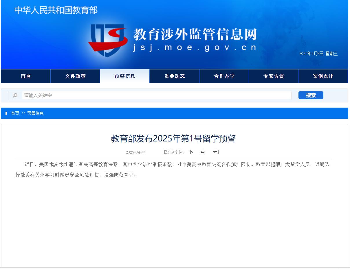 2025年4月,美國(guó)特朗普政府以“國(guó)家安全審查”為由,大規(guī)模取消中國(guó)留學(xué)生簽證,斯坦福大學(xué)、加州大學(xué)系統(tǒng)、哈佛大學(xué)等頂尖院校超300名國(guó)際生F-1簽證遭終止,涉及學(xué)生駕駛違規(guī)記錄、社交媒體言論甚至十年前的酒駕歷史。與此同時(shí),俄亥俄州通過(guò)《高等教育增強(qiáng)法案》(SB83),禁止州立大學(xué)接受中國(guó)政府資金,限制與中國(guó)高校的科研合作,并強(qiáng)制要求學(xué)術(shù)機(jī)構(gòu)建立“知識(shí)產(chǎn)權(quán)保護(hù)機(jī)制”。中國(guó)教育部隨即發(fā)布2025年1號(hào)留學(xué)預(yù)警,建議學(xué)生重新評(píng)估赴美風(fēng)險(xiǎn)。