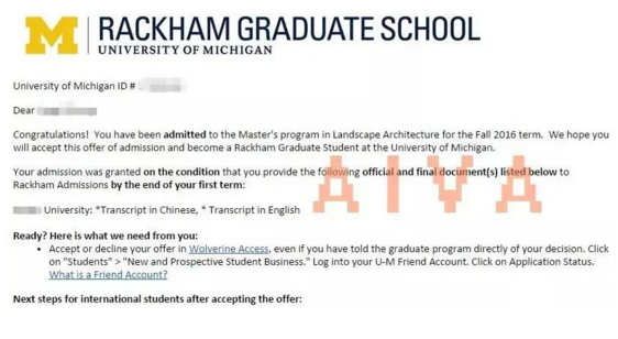 常春藤盟校之一的密歇根大學(xué)offer▼
