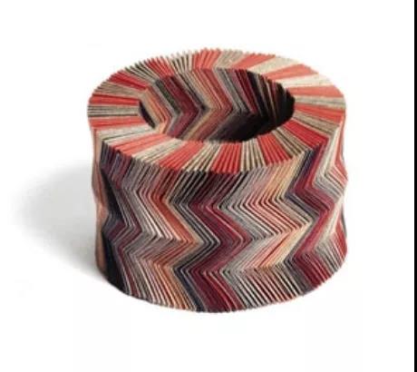 作為曾經(jīng)的紡織與編織設(shè)計師,Luis對紡織品圖案中的重復(fù)元素非常熟悉。他通常使用六層紙來制作作品:第1、3、4、6層通常是來自泰國、印度、日本等地的手工紙;第2層和第5層是來自瑞士的雙面包裝紙。這些紙張可以為組成作品的部件賦予所需的硬度。