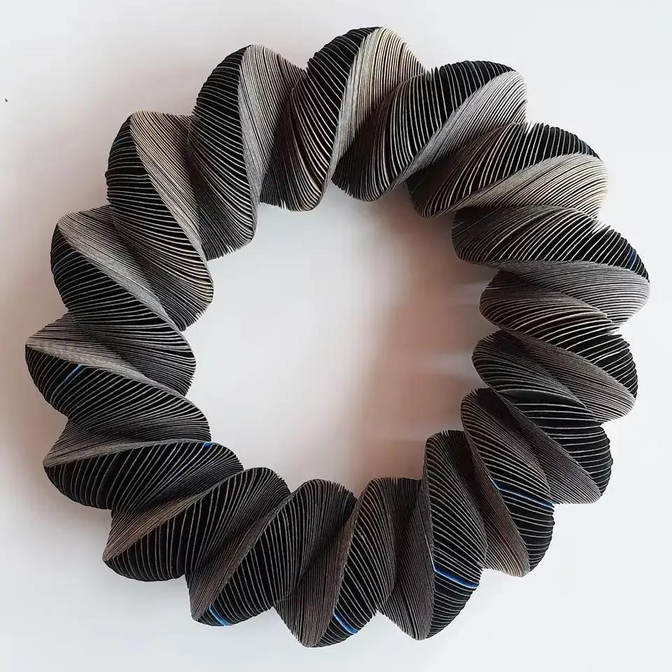Nel 的作品靈感來源于植物世界的韻律節(jié)奏和結(jié)構(gòu),她認(rèn)為紙張具有許多優(yōu)良品質(zhì),對于佩帶者來說,尤其是紙的觸摸感。多年來,她采用最優(yōu)秀品質(zhì)的紙來創(chuàng)作首飾,采用簡約的美學(xué)方法,以模塊化的元素組合出連續(xù)的形狀。
