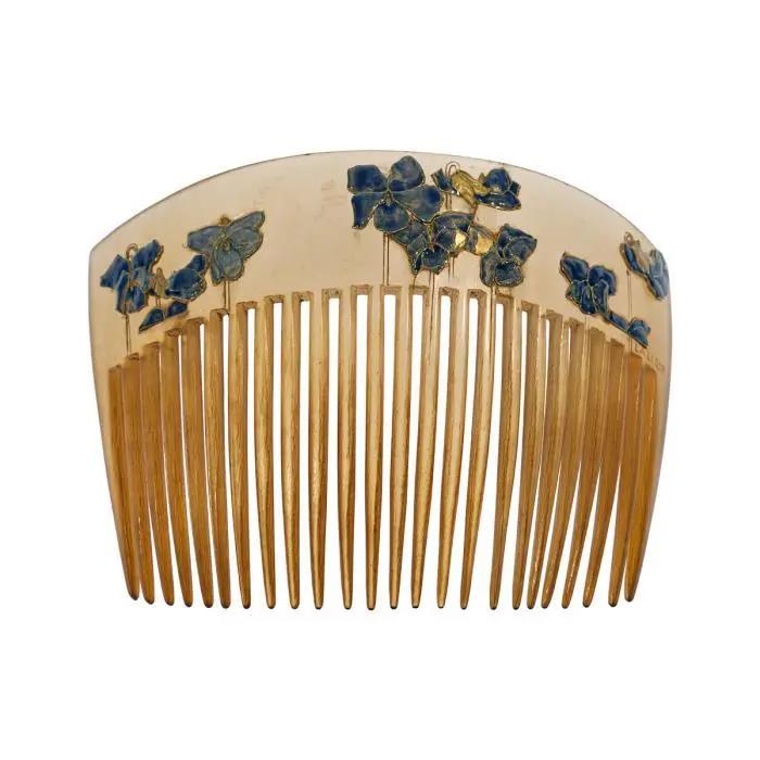 新藝術(shù)運(yùn)動(dòng)時(shí)期的首飾藝術(shù)風(fēng)格受日本藝術(shù)的影響更直接地體現(xiàn)為對西方傳統(tǒng)首飾類型與形制的突破。除了項(xiàng)鏈、手鐲、戒指、胸針等西方傳統(tǒng)首飾的常見形制之外,“新藝術(shù)”時(shí)期最流行的首飾還有形制豐富多彩的梳子、發(fā)簪。