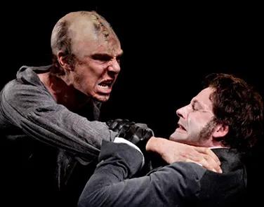 在NTLive版的《弗蘭肯斯坦》中,“卷福”本尼迪克特·康伯巴奇和約翰尼·李·米勒交替出演科學(xué)家弗蘭肯斯坦和他創(chuàng)造出來(lái)的怪物。“破衣?tīng)€衫”與“西裝革履”兩套戲服的對(duì)換,讓造物者和被造者之間同時(shí)產(chǎn)生對(duì)立與共通,角色在外表上呈現(xiàn)出了反差,卻隱秘地展示出了情感中的藕斷絲連。