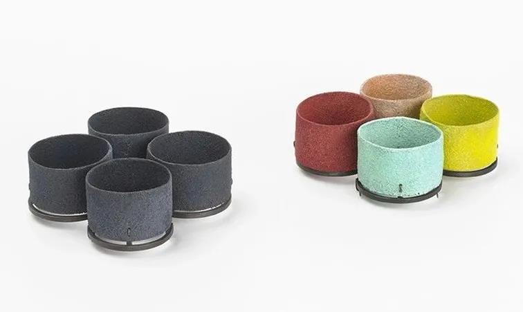 一邊,暗灰的琺瑯表面定義了形態(tài)、組成及邊界的細節(jié);在另一邊,色彩鮮亮的圓柱體覆上了純色琺瑯,各自占據(jù)了原本可能屬于其他色彩的位置。