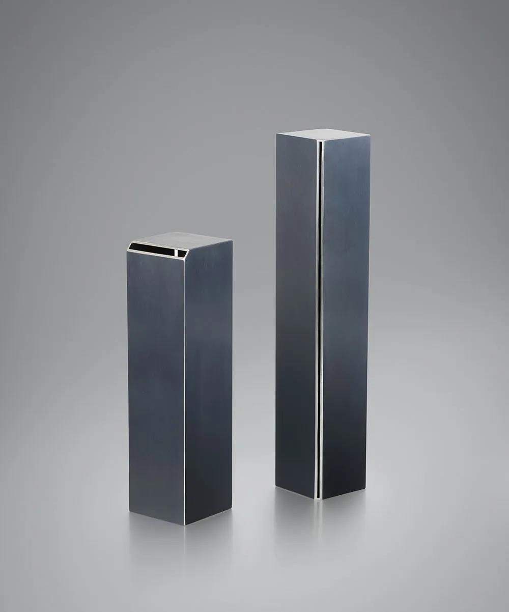 該系列利用邊緣上突出的切口和開口作為門,來揭示和強調(diào)內(nèi)部和外部空間的聯(lián)系。引入光的變化作為催化劑貫穿作品,形成不同的陰影,成為了作品本身多變的回聲。它增強了視覺沖擊,并質(zhì)疑了作品與周圍環(huán)境的關(guān)系。每件作品都是獨一無二的,是經(jīng)過精心控制和設(shè)計的制作過程的結(jié)果。所有作品都是用氧化純銀手工制作而成的。
