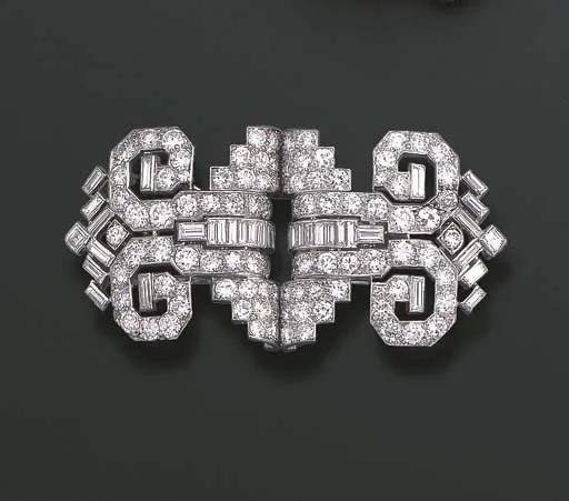 an art deco diamond double-clip brooch, by Cartier