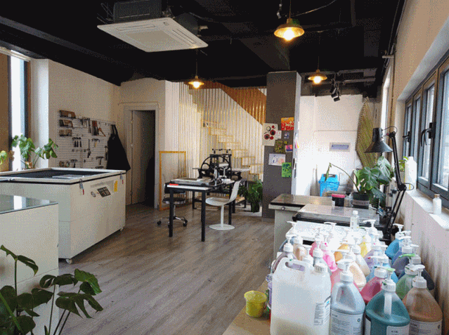 ●提供設備:絲網曝光機、 絲網印刷烘干機、真空印刷機 、印刷機、絲網清洗機(大&?。?、蝕刻機 、絲網晾曬架、印刷品存儲柜、孔版印刷機、Riso 油墨、 存儲架、玻璃桌面、裁紙器、訂書機、儲紙車、顏料車、 畫架、徽章機、圓刀
