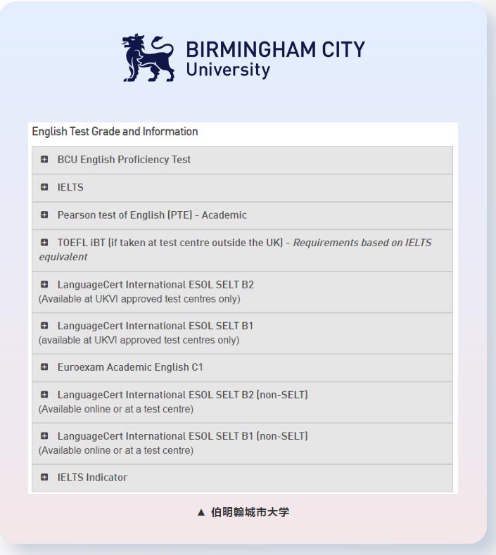 * 考生可以在大學官網(wǎng)確認具體需要的考試級別,一般為B2或C1。