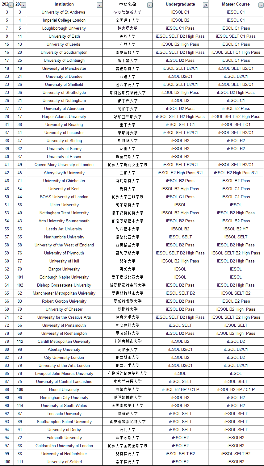 目前,包括帝國理工大學、曼徹斯特大學、愛丁堡大學、拉夫堡大學、倫敦大學亞非學院、倫敦藝術大學、伯明翰城市大學、倫敦大學金史密斯學院、南安普頓大學、利茲大學等100多所英國院校認可,認證院校名單還在持續(xù)增加。