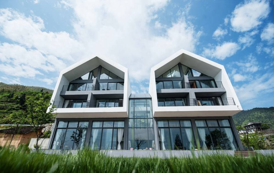 中國建筑設(shè)計師田景海留德歸國后,在位于浙江麗水的云和梯田,為母親建造了一座云海山間的房子。因為房子站立在層層疊疊的梯田里,取名為 “在田間”。整棟房子總共1000平米,13個房間,大部分房間都朝著梯田的自然景觀面,天氣好的時候,早上醒來就可以看見日出、云海、梯田交匯的壯闊景色。除了給母親的房間,田景海將空余的房間用來做民宿。