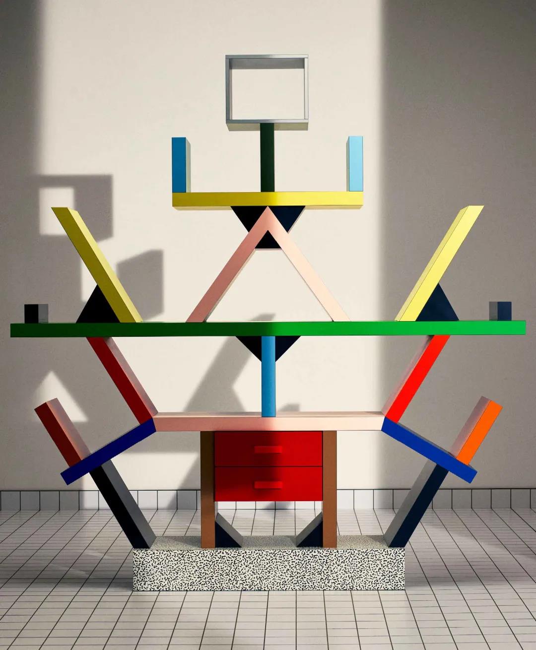1981年9月,孟菲斯集團(Memphis Group)首次以一種嶄新的對話方式出現(xiàn)在了Milan’s Arc’74 畫廊,展現(xiàn)出了前所未有的大膽的色澤,后現(xiàn)代的塑料感和活力度,反抗形式主義和工業(yè)化形式的新的審美形式。