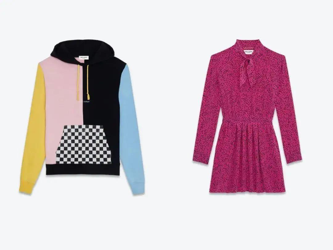 在這次的孟菲斯展覽中,由孟菲斯設計團隊與圣羅蘭創(chuàng)意總監(jiān)安東尼·瓦卡萊洛( Athony Vaccarello)聯(lián)手合作,推出的Saint Laurent Rive Droite服裝和家居用品系列。藝術總監(jiān)Anthony Vaccarello以Memphis Design Group 的經(jīng)典設計元素為靈感,創(chuàng)作出一系列以鮮艷色塊、幾何圖形、賽車方格、有機線條等元素為基礎的設計,包含球鞋、衛(wèi)衣、襯衫、洋裝、花器和購物袋等多元品項。
