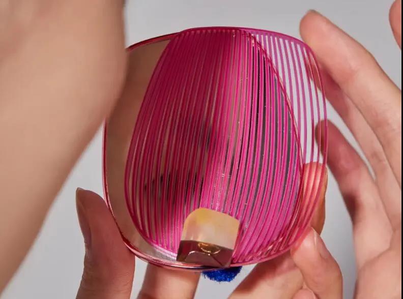 在 Linna 眼中,當(dāng)代藝術(shù)首飾不僅能表達(dá)藝術(shù)家個人的情感,還能憑借這種創(chuàng)作力與他人產(chǎn)生共鳴,表達(dá)一種社會背景下的情緒。化妝鏡這個小物件是生活在國際化都市的現(xiàn)代獨(dú)立女性必備的生活用品,Linna 希望當(dāng)她們在使用這面鏡子時,可以通過鏡中的條紋看到自己看不見的臉,從鏡子的反映中找到自信和真實(shí)的自己。