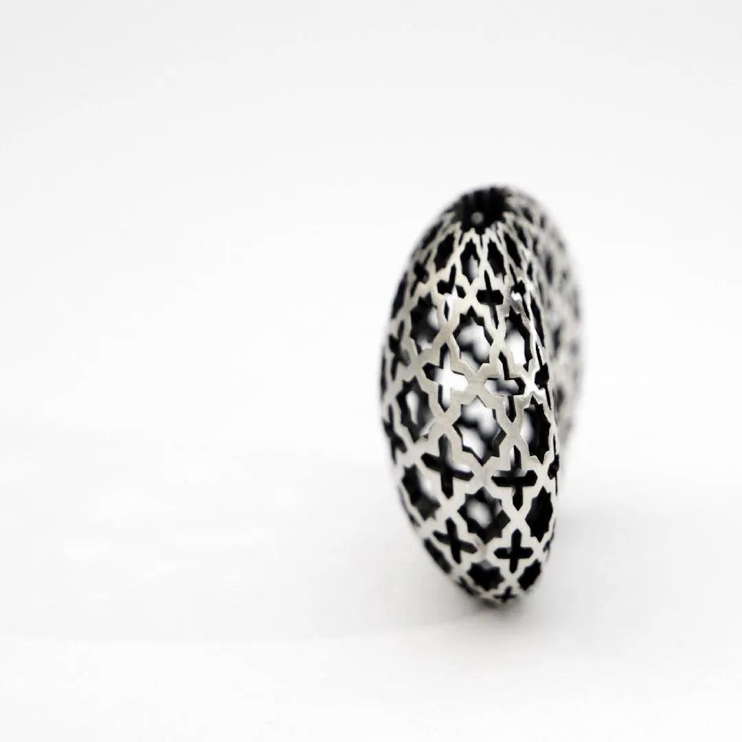 “Casaz”系列將伊斯蘭幾何圖案與3D打印技術(shù)相結(jié)合,擁抱了參數(shù)化設(shè)計(jì)與磁鐵運(yùn)用的可能性。這一系列與當(dāng)?shù)毓そ尺M(jìn)行了密切合作,通過首飾所傳達(dá)的情感力量,將構(gòu)成個體身份的個人記憶與共同的社會價值觀聯(lián)系了起來。