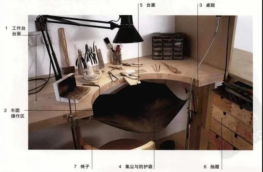 如果你實在沒有金工桌的話,普通的桌子也可供你進(jìn)行前期的簡單操作??梢姷裣灱挤ǘ嗝吹囊咨鲜謱嵺`。不過還是建議大家在實木制的首飾工作臺進(jìn)行下述操作練習(xí)。因為專業(yè)的工作臺更適用于放置工具,安裝吊機,以及收集銼削下來的粉末等等。