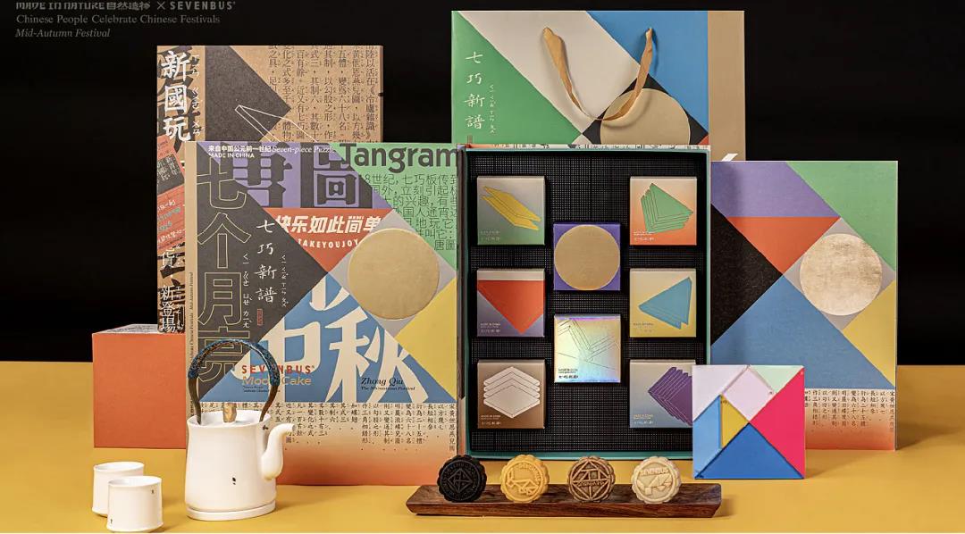 “自然造物”自2017年起,發(fā)起中國傳統(tǒng)年節(jié)復(fù)興計(jì)劃“大過中國節(jié)”,讓傳統(tǒng)年節(jié)能回歸到當(dāng)下生活。2021年中秋,帶來了以凝結(jié)中國傳統(tǒng)智慧的“七巧板”為靈感的特別禮盒。除了美味的月餅,禮盒中還有一組亞克力材質(zhì)的七巧板和《七巧新譜》小冊子,可以邊吃邊拼搭。禮盒被做成一本書的形狀,并用“十方斤”包裹,古樸又浪漫。