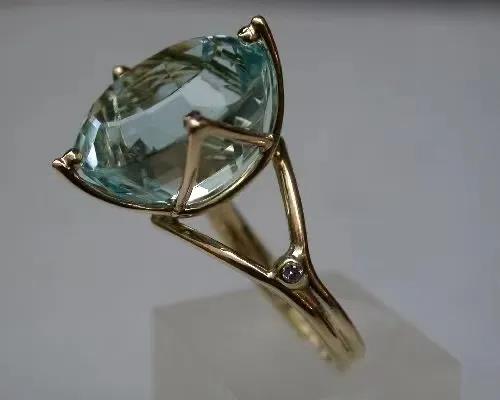 爪鑲是最常見、最經(jīng)典的一種鑲嵌方法,是用金屬爪(柱)來緊緊扣住寶石。它的優(yōu)點是金屬很少遮擋寶石,能夠最大程度地突出寶石的光學效果。并有利光線從不同角度入射和反射,令寶石看起來更大更璀璨。其款式的變化和適用性也最為廣泛。爪鑲不僅適用于刻面寶石,也適用于弧面寶石,因為鑲口的四周呈開放狀,所以能起到放大寶石尺寸的效果。