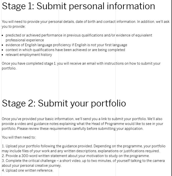 在提供基本信息后,申請人將收到作品集提交鏈接,以及一段視頻及指導(dǎo)說明。按要求提供: