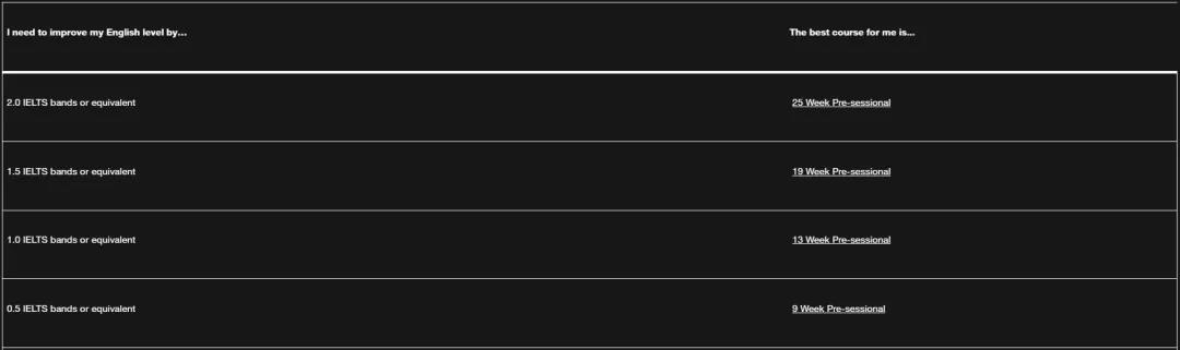 語言班,一般稱為Pre-sessional English,幫助沒有滿足本科或碩士雅思要求的學(xué)生在完成語言班學(xué)習(xí)后可以繼續(xù)本科或碩士課程。根據(jù)學(xué)生當(dāng)前英語水平,以及與所就讀專業(yè)要求之間的差距,提供不同時間長度的課程,短則2-6周,長到20-35周不等。