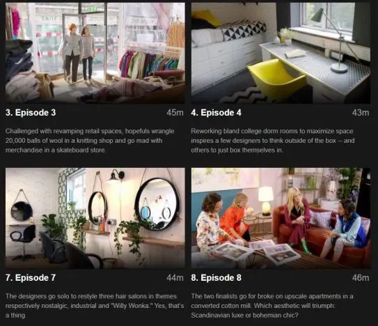 《Interior Design Masters》是英國一檔真人秀節(jié)目,十位選手按照要求獨(dú)立或合作完成室內(nèi)設(shè)計(jì)比賽,第一季8集的主題分別是:別墅樣板房設(shè)計(jì)、巧克力色酒店房間設(shè)計(jì)、店鋪設(shè)計(jì)、學(xué)生宿舍設(shè)計(jì)、鄉(xiāng)村高級度假村建造、餐廳翻新、理發(fā)店設(shè)計(jì)、私人客戶住所設(shè)計(jì)。不同的主題考驗(yàn)選手對于客戶需求、實(shí)用性、美觀度的綜合考量,以及對于時(shí)間管理、團(tuán)隊(duì)協(xié)作、解決問題、統(tǒng)籌規(guī)劃的綜合能力。