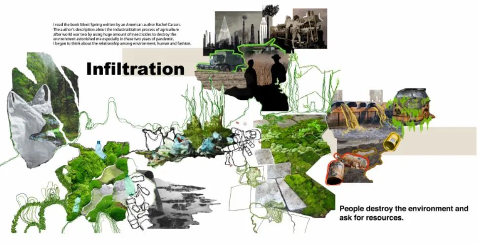 我最喜歡的項(xiàng)目是Infiltration滲透。這個(gè)項(xiàng)目主要反映的是人類造成的污染,一步步滲透進(jìn)森林,滲透進(jìn)土地和植物的一個(gè)過(guò)程。