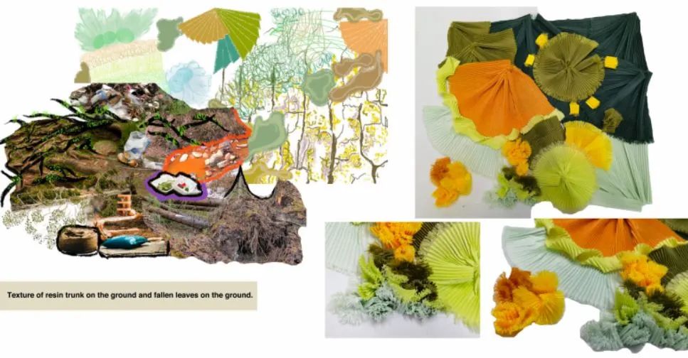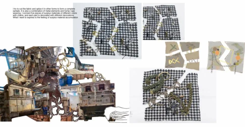 其實(shí)對(duì)我來(lái)說(shuō),做research和拼貼是最難的。做sample以及材料的選擇和運(yùn)用我還是比較在行的。但拼貼因?yàn)橹皼](méi)做過(guò),比較生疏,還是葉老師一步一步教我的。葉老師真的教了我很多,還教我怎么用Procreate,給我示范畫草圖,做拼貼,立裁,打版,做樣衣,帶著我捋思路等等等等,就差握著我的手幫我做了!啊哈哈哈。面試前葉老師也幫我改了好多次稿子,有個(gè)七八九個(gè)版本了,特別耐心。