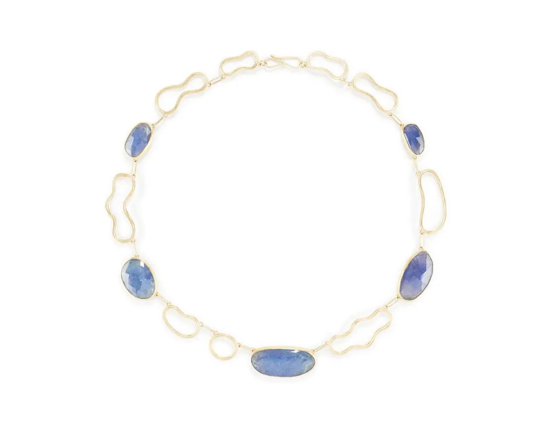 Rosecut, freeform Tanzanite, 18K & 22K yellow gold with alternating 18K gold amoeba double-wire shapes