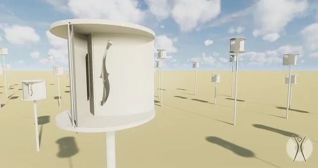 Tremolo 是50個(gè)獨(dú)立的風(fēng)力/人力樂(lè)器,每個(gè)都有一個(gè)旋轉(zhuǎn)的木制外殼,在旋轉(zhuǎn)中發(fā)出顫音,每一個(gè)裝置的高度都根據(jù)它所創(chuàng)建的音符音調(diào)而不同。
