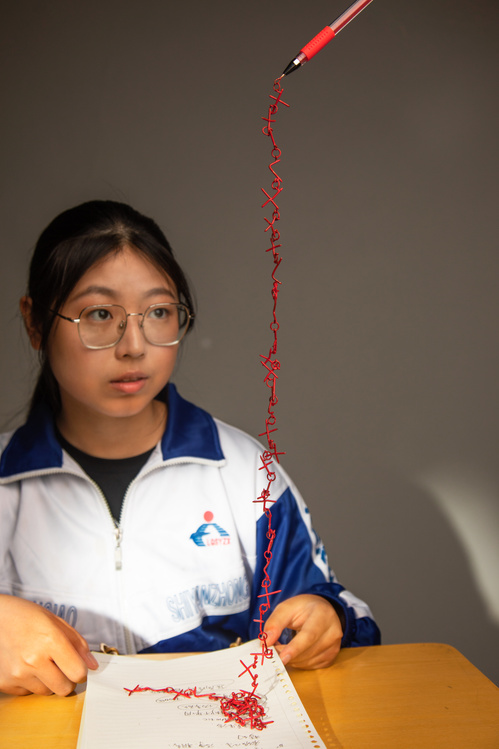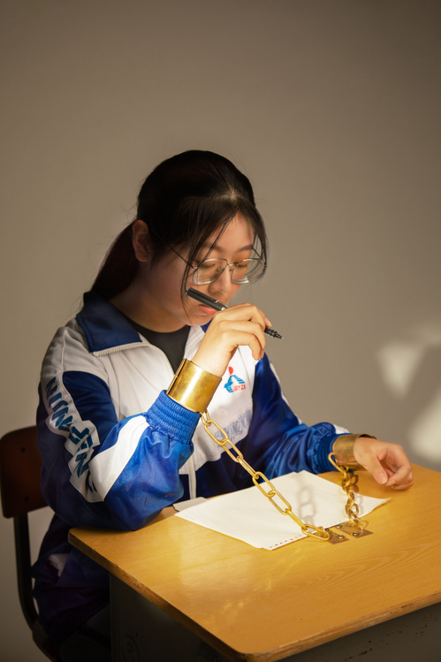 In the project "Spike in Learning” represents the pressure and anxiety come from my high school life which I can not escape.I have no outlet for these emotions, which is even causing me harm. So in my design, I extracted from the torture to the painful elements and combined with the use of ready-made learning tools, expressed my feeling of study in the classroom, the control and critique from school to make us to achieve better results. Through the work, I have amplified my personal emotions. And I hope to let the audience associate the meaning behind the elements.