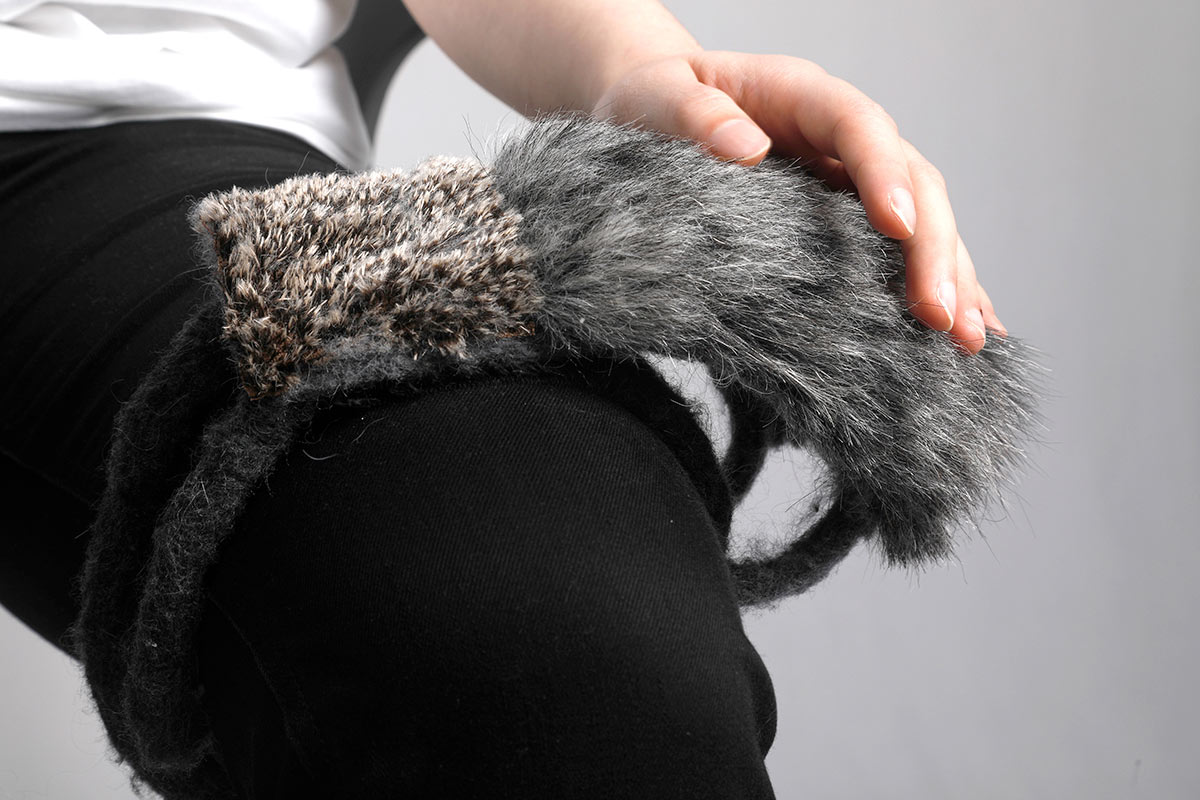 首飾對(duì)于Xiaoyan Rong來(lái)說(shuō)是一種將不同的個(gè)體連接在一起的橋梁。雖然說(shuō)每個(gè)人都是不同的,但世界萬(wàn)物都是相通的,人們可以透過(guò)別人的生活來(lái)回憶起自己曾經(jīng)經(jīng)歷過(guò)的事。在她的作品《可觸碰的思念》里,她用皮毛作為主要材料,來(lái)表達(dá)她對(duì)她的寵物狗的思念。通過(guò)佩戴這系列作品、撫摸毛發(fā)這一動(dòng)作,可以讓她感覺(jué)她的狗似乎就陪伴在我的身邊;她希望觀眾在佩戴她的作品時(shí)也可以想起對(duì)他們重要的事物。