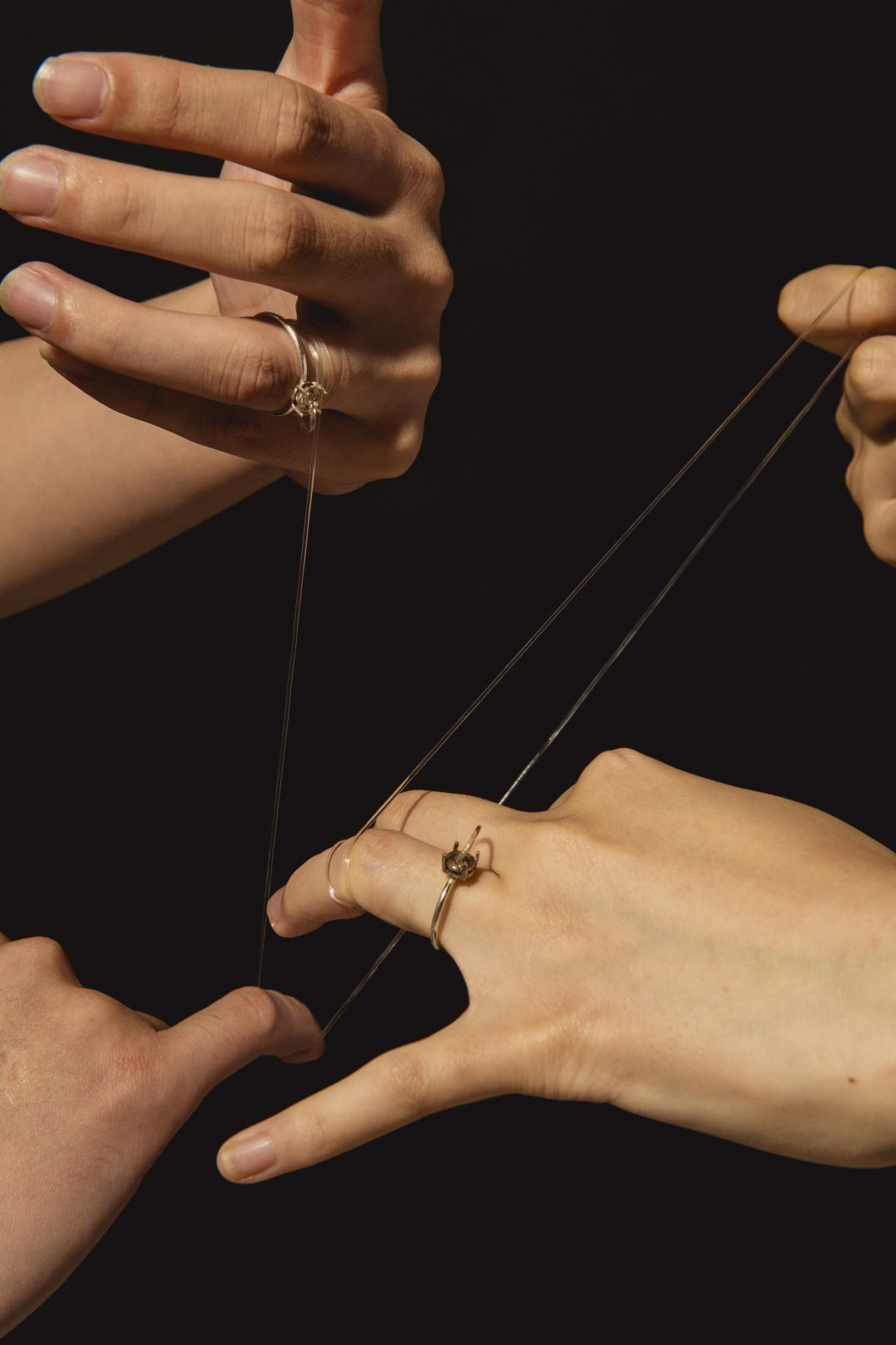 在項目《Wrapping》中我通過視頻展示曾經自己追求完美主義的行為,在創(chuàng)作過程中剖析行為的源頭,最終意識到不斷追求遮蓋瑕疵只是虛假的“完美”。項目《Necklace》是首飾和游戲的結合,以金屬項鏈為線索結合不同的新材料,與觀眾互動進行探索首飾秘密的游戲?!禝nterpersonal Rings》 中每一件首飾靈感都來源于特定的事件,用首飾的語言具象化其在人際關系中帶來無形的影響。