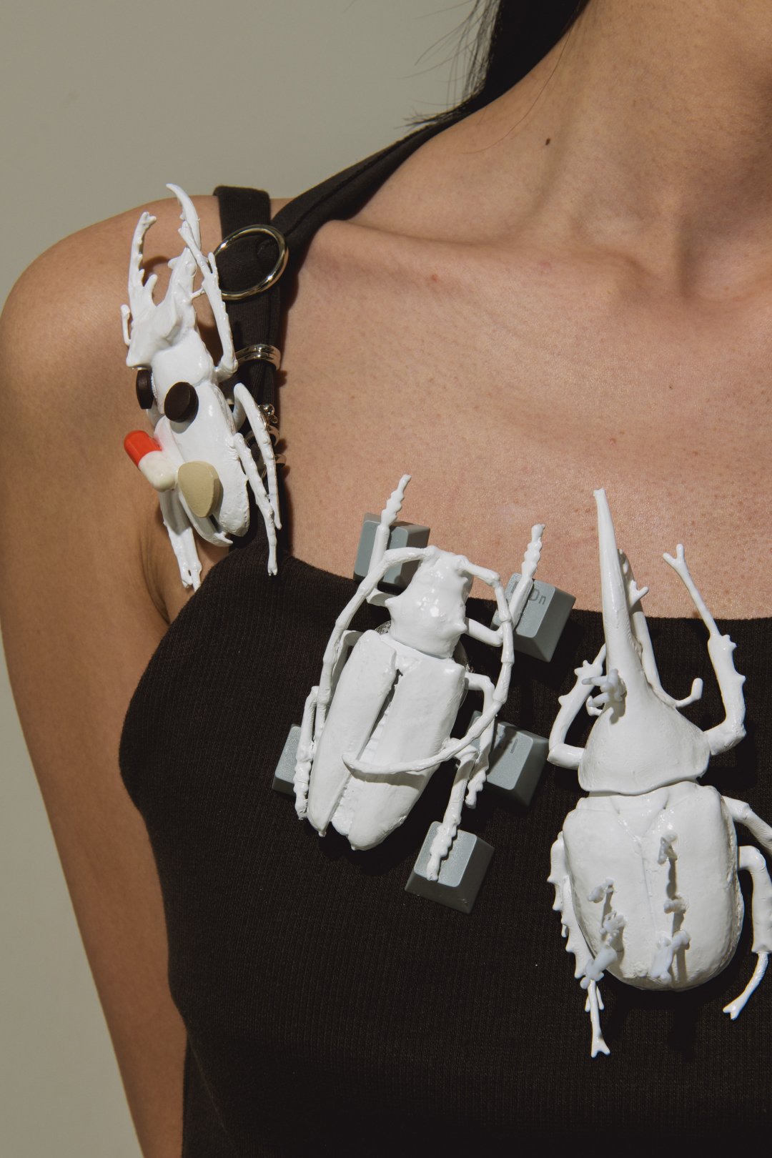 在我看來,色彩是吸引人的,我一直希望能在我的首飾中融入突出色彩元素的主題。在作品《Blocks, lines, drops》中,我嘗試了結(jié)合色彩和材料的探索,用丙烯顏料本身作為材料去創(chuàng)作首飾,通過探索顏料形態(tài)的隨機(jī)性與色彩反映人潛意識情緒的結(jié)合,從中感受到了創(chuàng)作的樂趣。