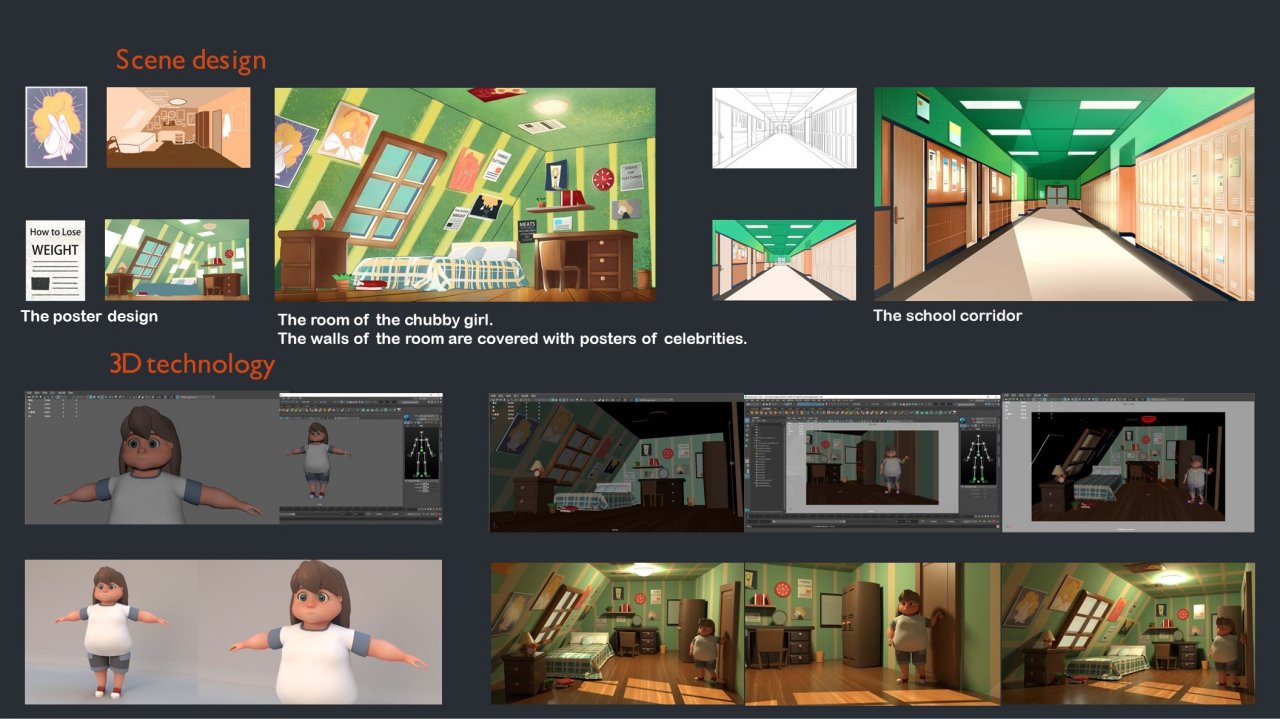 《發(fā)光》(GLOW UP)的靈感來源于我自己的經(jīng)歷。作為一個(gè)相貌普通的女生,我非常羨慕學(xué)校里那些受歡迎的人們。然而,我發(fā)現(xiàn)我并不是唯一一個(gè)。幾乎大部分人都有著一定的容貌焦慮,不光是相貌普通的人,甚至那些受歡迎人也一樣。于是這個(gè)故事誕生了,我想通過這個(gè)故事來告訴那些和我一樣經(jīng)歷的人們,每個(gè)人都是獨(dú)一無二的,我們應(yīng)該接受自己的不完美。
